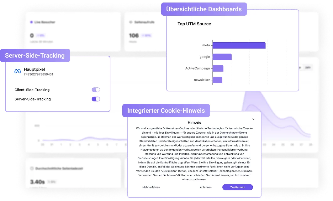 Cookie-Hinweis, UTM-Tracking und Website-Analytics in einem Tool